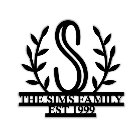 Swirly Circled Initial with Last Name and Est. Date